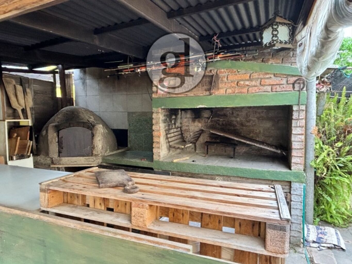 Área techada con parrillero y horno de barro, perfecta para reuniones