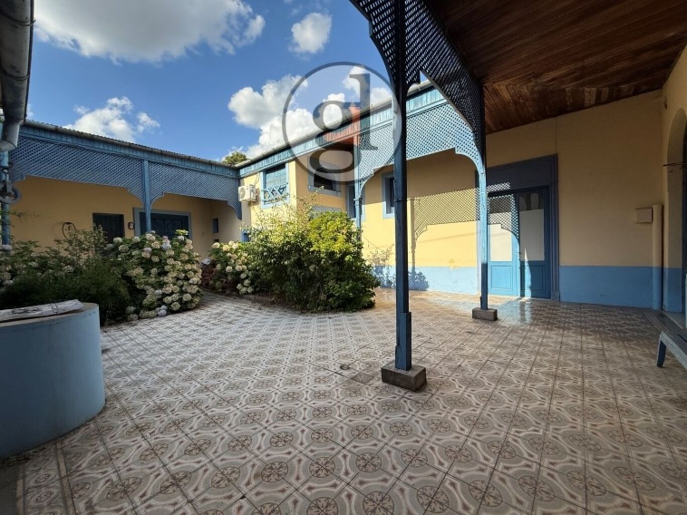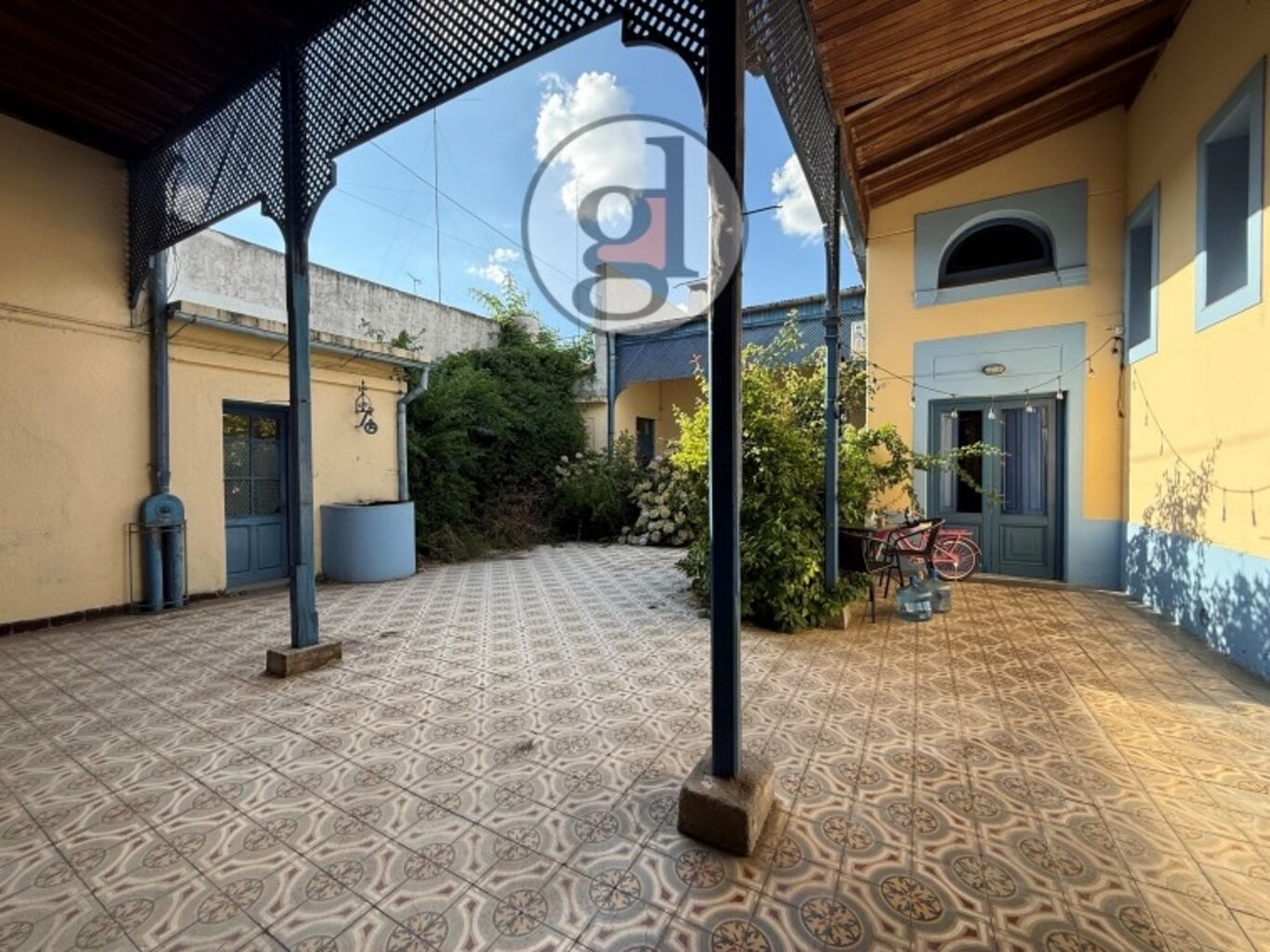 Al ingresar, un encantador patio central conecta los distintos espacios, creando una atmósfera cálida y funcional. Es un lugar ideal para disfrutar del aire libre, compartir momentos o simplemente relajarse después de la jornada. Además, cuenta con baño común, lo que lo hace aún más práctico para el uso de los salones.